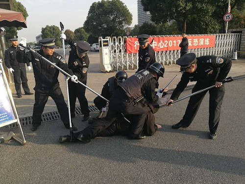 为切实提高机关警卫的反恐意识和防暴技能,及时、有效应对各类突发事件的发生,做好安全防范工作,11月26日,我局组织保安、特警等相关人员在曲屯路行政中心组织了一次反恐演练。演练模拟了人员冲击、汽车闯入、自焚等多种情形,并及时对各种情形作出应对,通过反恐演练,进一步增强了反恐意识,掌握了正确的应急处置技能,更有效地保障机关大院安全。(服务中心)