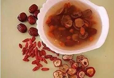 取山楂3~4个,红枣5~6个,枸杞10粒,将山楂和红枣掰碎,像沏茶一样,把这“三红”用开水冲泡。
